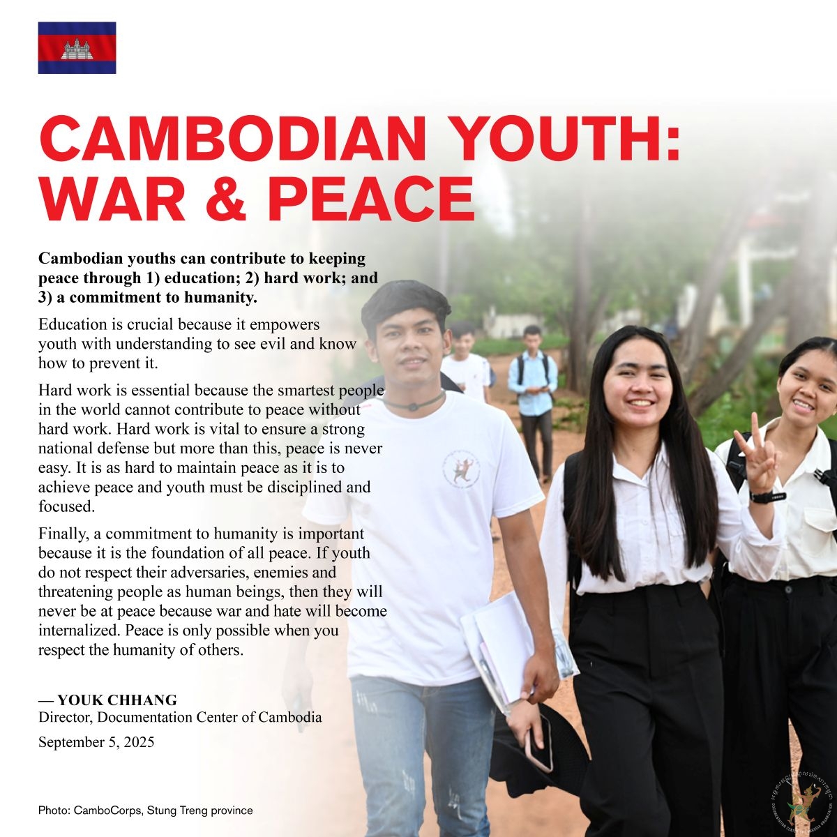 Cambodian youths can contribute to keeping peace through 1) education, 2) hard work; and 3) a commitment to humanity.