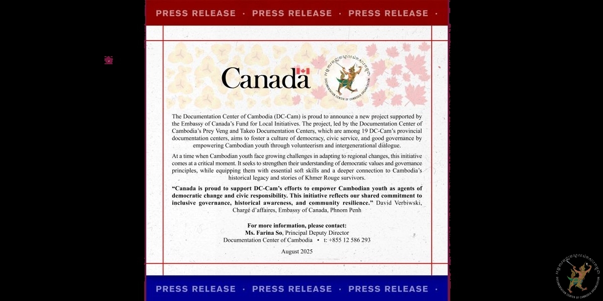 “Canada is proud to support DC-Cam’s efforts to empower Cambodian youth as agents of democratic change and civic responsibility. This initiative reflects our shared commitment to inclusive governance, historical awareness, and community resilience.” David Verbiwski, Chargé d’affaires, Embassy of Canada, Phnom Penh