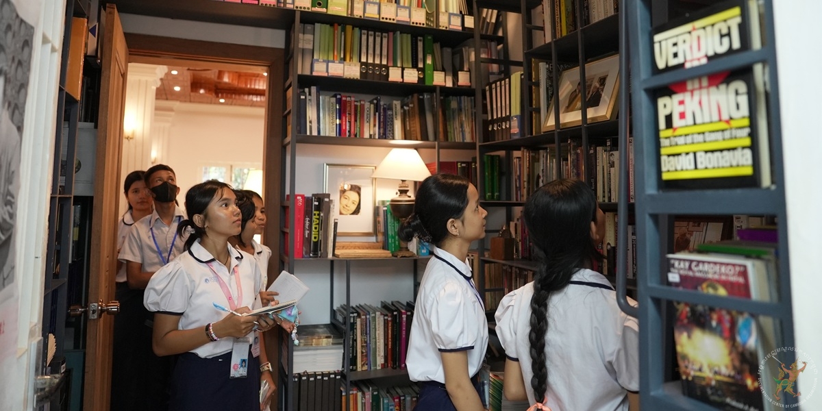 The session went beyond just answering questions or giving lectures since it encouraged students to reflect on how they might respond to such atrocities and work toward preventing genocide in the future. “This experience is really valuable for my further studies,” expressed by student Oul Kim-Song. The study sessions concluded with a tour of a panel exhibition on the chronology and process of the Khmer Rouge Tribunal over a 16-year period, presented by Ros Sampeou, the Director of Archives at the Queen Mother Library. This exhibition provided additional materials and information to help answer the students’ questions. Beyond the study sessions, students are welcome to visit the center and library anytime to conduct their own research. “I really want to join the study sessions again because I want to learn more about Cambodian history and help share this knowledge with the next generation,” said Yean Lyhav, a student.