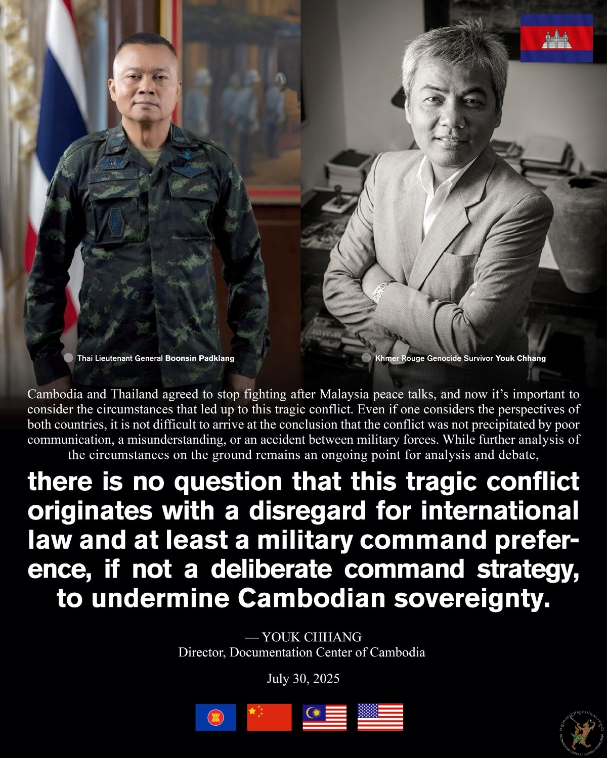 (L) Lieutenant General Boonsin Padklang: Thai Official in charge of border operations with Cambodia. 4 months ago អត្ថបទទាក់ទងBook Release: "Village Stories of the Khmer Rouge Years"CAMBODIAN YOUTH: WAR & PEACEKhmer Rouge History Study Session for PSE StudentsStrengthening Educational Responses to the Prevention of GenocideThe Republic of the Philippines truly stands out as a model, leader an...The future of peace depends upon the kind of strategic leadership offe...ចែករម្លែកទៅបណ្តាញទំនាក់ទំនងសង្គម Related Posts Genetic Testing to Fight Cancer Discussed during DC-Cam 5th Cambodian Medical Students Workshop The Dreams of Heroes A Story of Cambodians who were killed by the Thai Aggression, 2025 Khmer Rouge Railways to the Northwest: Young Cambodians Embark on a Historical Journey and Study Tour About The Author Eng Sokmeng Add a Comment Cancel replyYour email address will not be published. Required fields are marked *Comment Save my name, email, and website in this browser for the next time I comment.