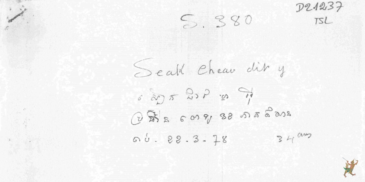 [1] ឯកសារ D21237 ស្ដីពីចម្លើយសារភាពរបស់ សៀក ជាវ ហៅ អ៊ី។ ប្រវត្តិនៃសកម្មភាពក្បត់របស់ សៀក ជាវ គឺកសាងកម្លាំងក្បត់ បំផុសឲ្យយុវជន-យុវនារី ប្រឆាំងនឹងបដិវត្តន៍ខ្មែរក្រហម បំផ្លិចបំផ្លាញសម្ភាររបស់អង្គការ អប់រំឲ្យគ្រូពេទ្យមិនយកចិត្តទុកដាក់លើការព្យាបាលអ្នកជំងឺ និងលួចយកថ្នាំពេទ្យយកទៅលាក់ទុក។ ជាវ ត្រូវបានអង្គការខ្មែរក្រហមចាប់ខ្លួននៅថ្ងៃទី២២ ខែមីនា ឆ្នាំ១៩៧៨។ កំណត់ចំណាំ៖ “រាល់ចម្លើយសារភាពរបស់អ្នកទោសទាំងអស់នៅមន្ទីរសន្តិសុខស-២១ សុទ្ធតែឆ្លងកាត់ការបង្ខិតបង្ខំ និងធ្វើទារុណកម្មធ្ងន់ធ្ងរពីកងសួរចម្លើយរបស់ខ្មែរក្រហម ដូច្នេះមិនអាចសន្និដ្ឋានបានថាចម្លើយរបស់ កក់ ឃីម ពិត ឬយ៉ាងណានោះទេ”។