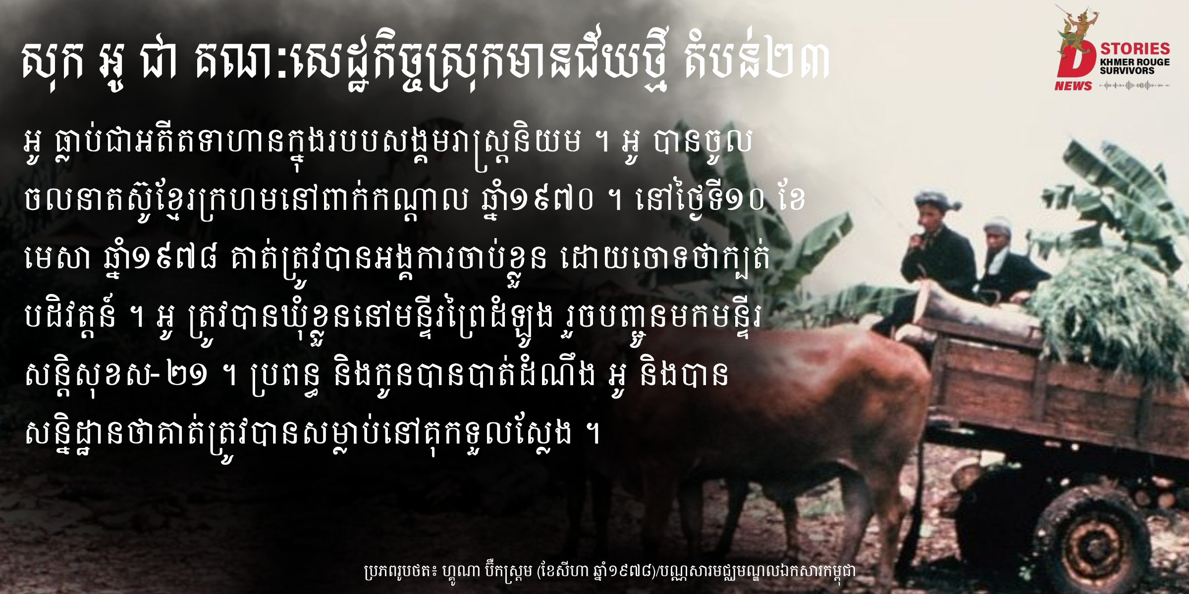 [1] K01282 ប្រវត្តិរូបអ្នកទោសជាប់ឃុំឃាំង, សុក អូ ជាគណៈស្រុកមានជ័យថ្មី, តំបន់២៣ ភូមិភាគបូព៌ា, ឯកសារចំនួន១ទំព័រ, មជ្ឈមណ្ឌលឯកសារកម្ពុជា។