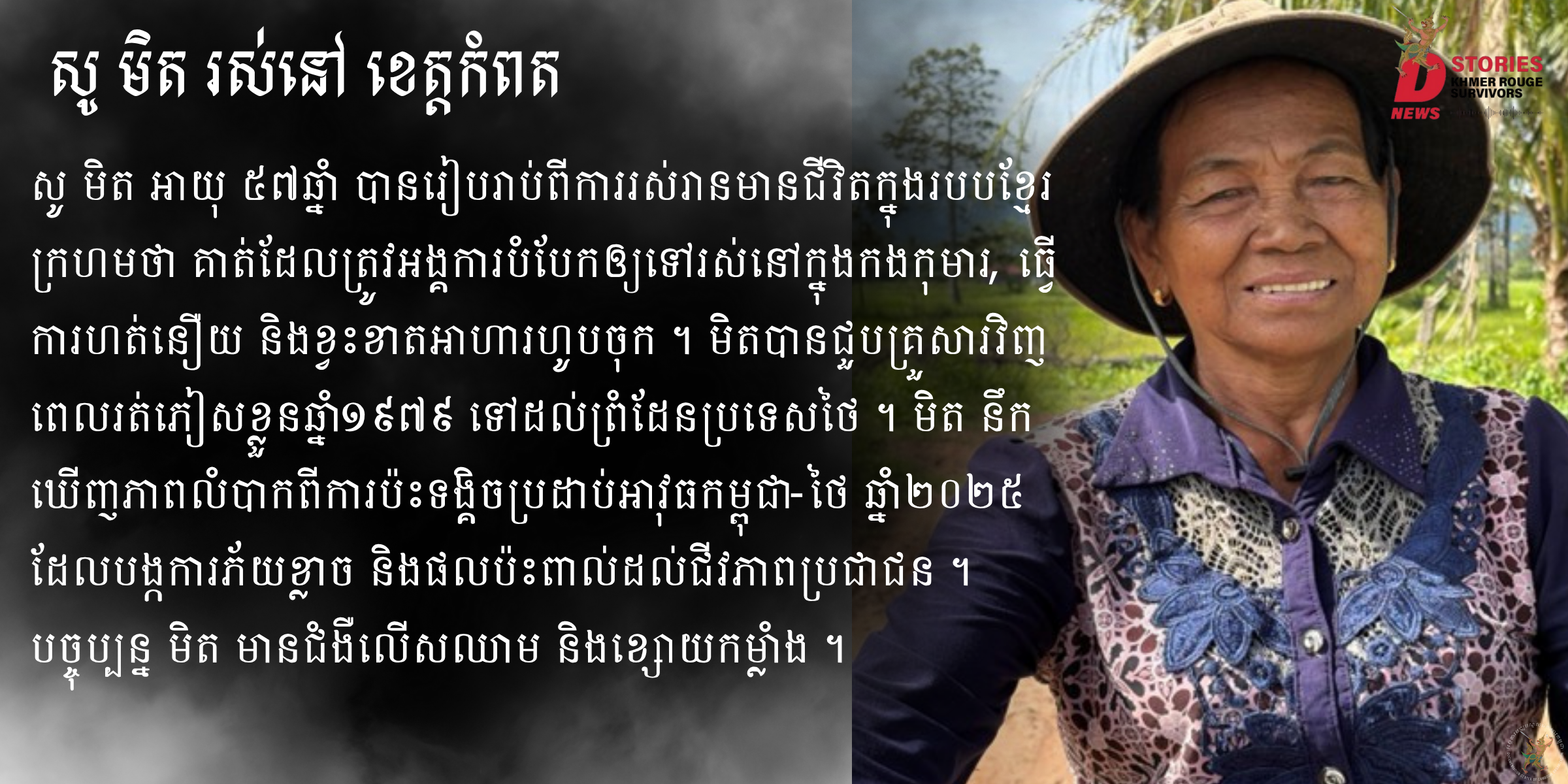 សូ មិត៖ អ្នកអ្នករស់រានមានជីវិតពីរបបខ្មែរក្រហមនៅតំបន់បាក់នឹម រៀបរាប់អំពីផលវិបាកនៃការប៉ះទង្គិចនៅតាមបណ្តោយព្រំដែនកម្ពុជា-ថៃនិងស្ថានភាពសុខភាពបច្ចុប្បន្ន