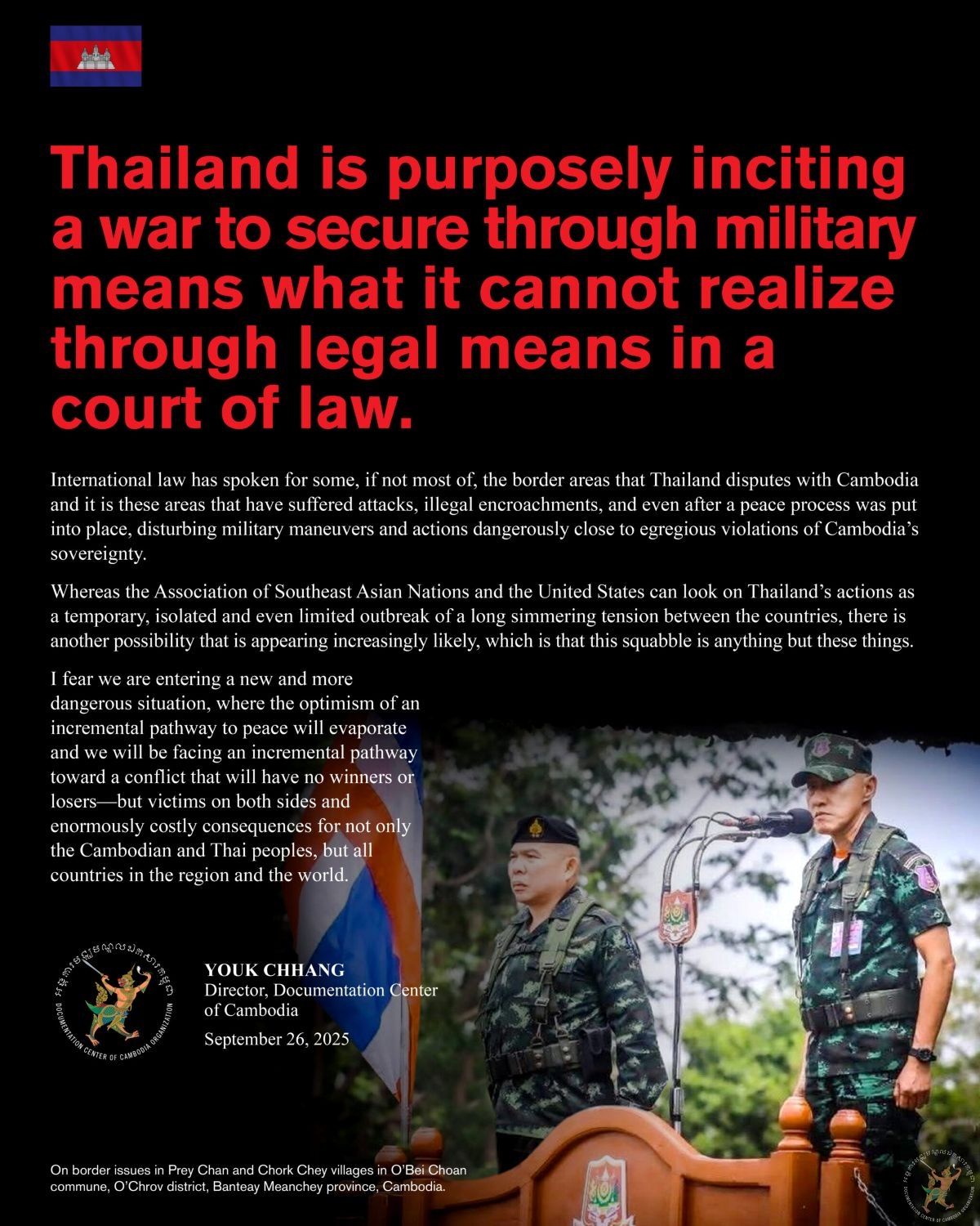 Thailand is purposely inciting a war to secure through military means what it cannot realize through legal means in a court of law.