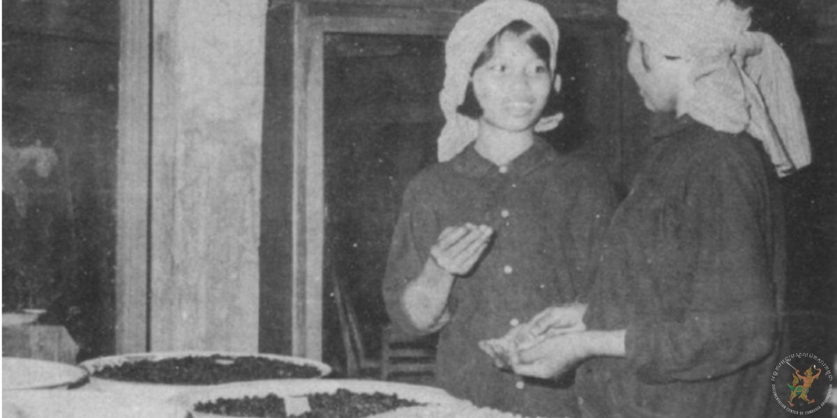 នៅពេលនោះ ខ្ញុំមានអាយុប្រហែល២៤ឆ្នាំ ចូលធ្វើជាកងទ័ព មានយុវជន យុវនារីជាច្រើននាក់ ហើយបែងចែកតាមផ្នែកផ្សេងៗគ្នា។ ចំណែកខ្ញុំនៅខាងនារីដឹកជញ្ជូនគ្រាប់ នៅតំបន់១៣ ភូមិភាគនិរតី ខេត្តកំពង់ស្ពឺ។ តំបន់២៥ ខេត្តកណ្តាល មាន៥ស្រុក គឺស្រុកកណ្តាលស្ទឹង ស្រុកស្អាង ស្រុកកោះធំ ស្រុកកៀនស្វាយ និងស្រុកលើកដែក[2], រួមទាំងតំបន់៣៣។ តាមុត នៅខាងកងទ័ព, យាយខុម និងយាយយុត នៅខាងកងនារី, ចំណែកតាសោម នៅខាងគណៈតំបន់។ មុនចេញទៅកាត់ដេរ ខ្ញុំត្រូវរៀនសូត្រខាងពេទ្យធ្មប។ ព្រោះខ្ញុំខ្ជិល រៀនបន្ទាប់មកបានខ្មែរក្រហមវាយបែក ហើយគ្រួសារខ្ញុំក្លាយជាប្រជាជនថ្មី។ នៅពេលនោះមានអ្នកមានអំណាចធំៗដូចជា តាម៉ុក, តានួន ជា និងខៀវ សំផន បានមកបង្រៀនវគ្គនយោបាយតាមកងពល។