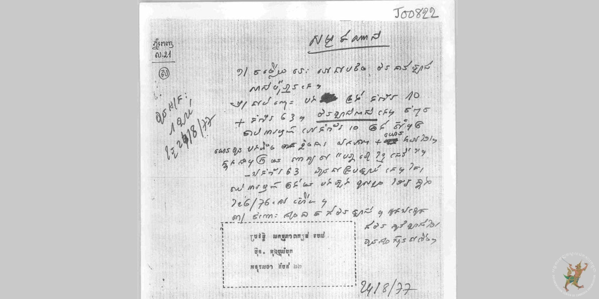 [1] ឯកសារលេខ J០០៨២២ តម្កល់នៅបណ្ណសារមជ្ឈមណ្ឌលឯកសារកម្ពុជា មានចំណងជើង,«ឈ្មោះ អ៊ុយ ឃាង » សរសេរវាយអង្គុលេខចំនួន៣៤ទំព័រ។ កំណត់សម្គាល់ៈ ចម្លើយសារភាពរបស់អ្នកទោសទាំងអស់សុទ្ធតែឆ្លងកាត់ការបង្ខិតបង្ខំនិងធ្វើទារុណកម្មយ៉ាងធ្ងន់ធ្ងរពីកងសួរចម្លើយរបស់ខ្មែរក្រហម ដូច្នេះយើងមិនអាចសន្និដ្ឋានបានថាចម្លើយសារភាពរបស់ អ៊ុយ ឃាង ពិតឬយ៉ាងណានោះទេ?