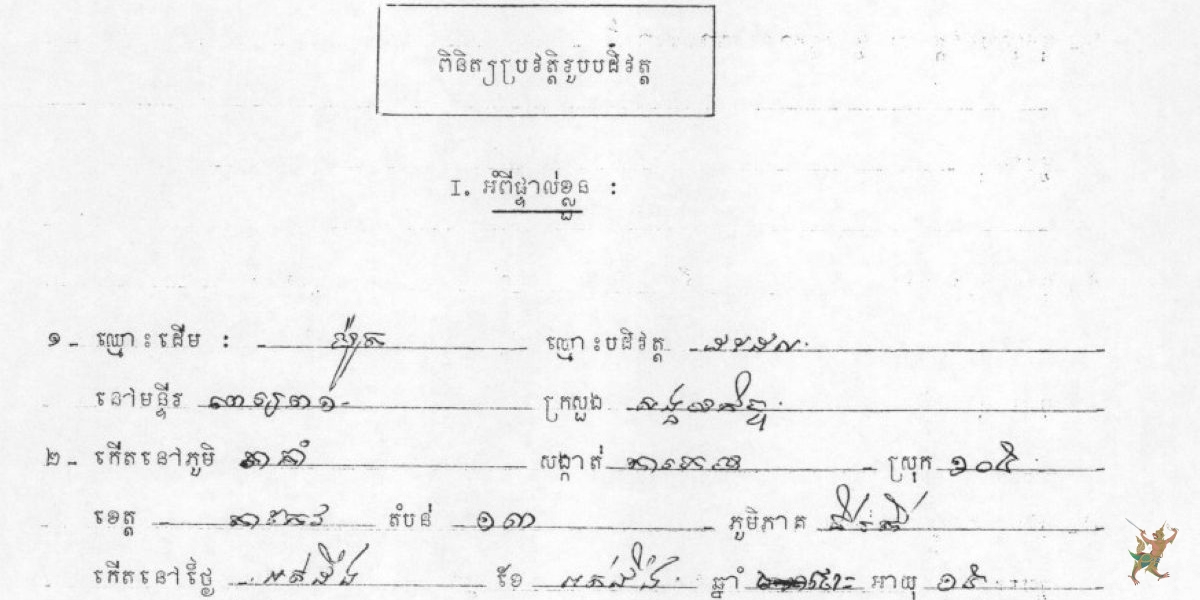 [1] មជ្ឈមណ្ឌលឯកសារកម្ពុជា, ឯកសារលេខ I00381, ពិនិត្យប្រវត្តិរូបបដិវត្ត សមមិត្ត ម៉ូត, នៅមន្ទីរពេទ្យ ព១, ក្រសួងសង្គមកិច្ច។